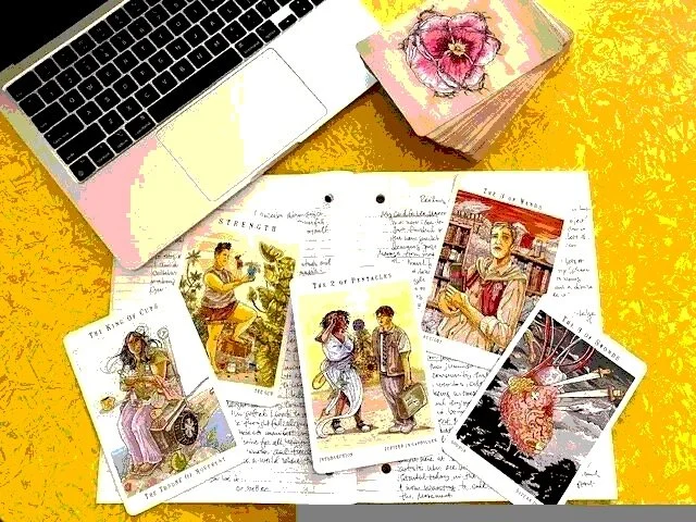 🍵 Scene 3: Creating Containers — Creativity is a space where we channel our felt sense of the world into new form (writing, visual art, dance, etc.). If we are cut off from our own emotions, we will also be cut off creatively. In this scene, we work with the tender Queen of Cups, and the fully contained World archetypes to move emotional energy into creative action and expression.