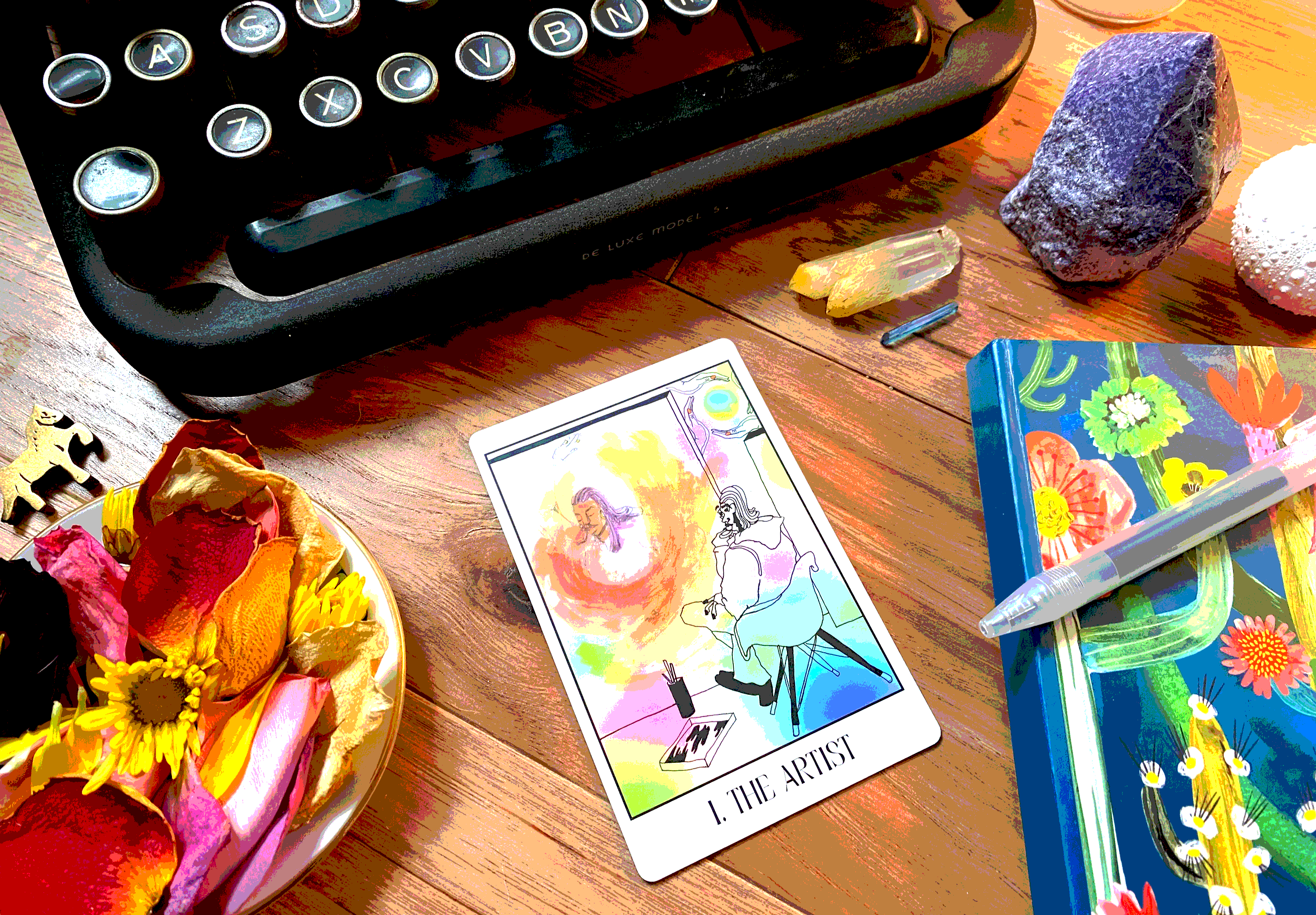 🧹 Scene 1: Clearing the Path — We work with The Fool and the Ace of Pentacles to start making more space for our creativity, whether on our calendars or in physical space. We examine what’s sucking our time and energy away, and what small shifts we can make to conserve and protect creative time for ourselves.