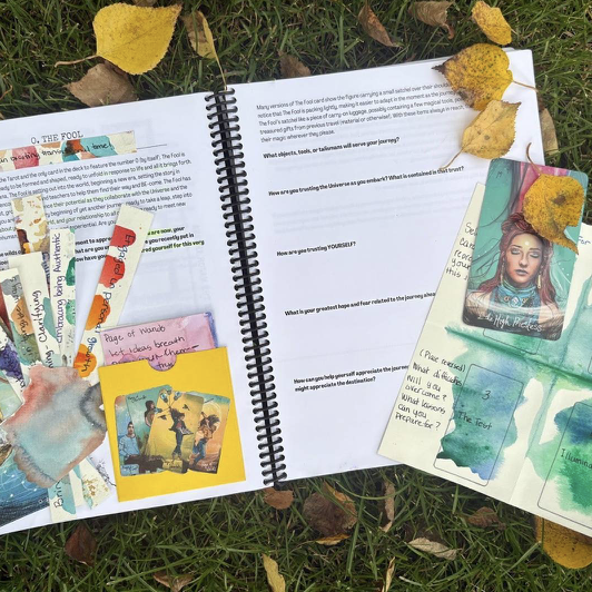 A gorgeous, spacious, magical workbook — a PORTAL! — into the world of Tarot through journaling, creativity, and embodiment!